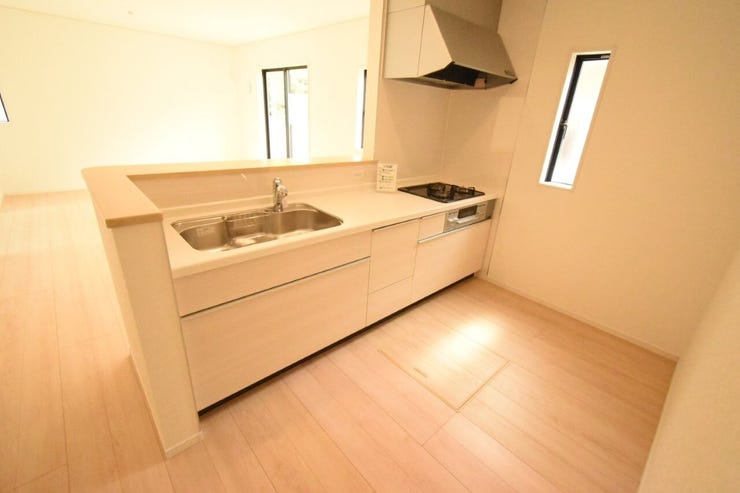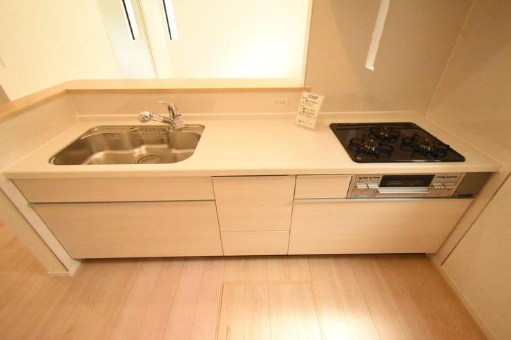 対面式キッチンでリビングを見渡しながら家事ができます